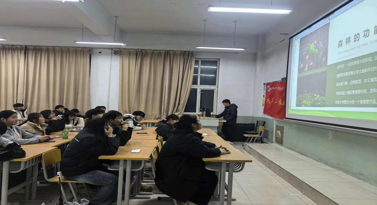 意义:通过主题讲座,不仅增强了同学们对森林保护重要性的认识,还激发了大家参与生态保护的积极性和责任感。许多同学表示,将从常生活中的点滴做起,践行绿色生活方式,共同守护我们的绿色家园。