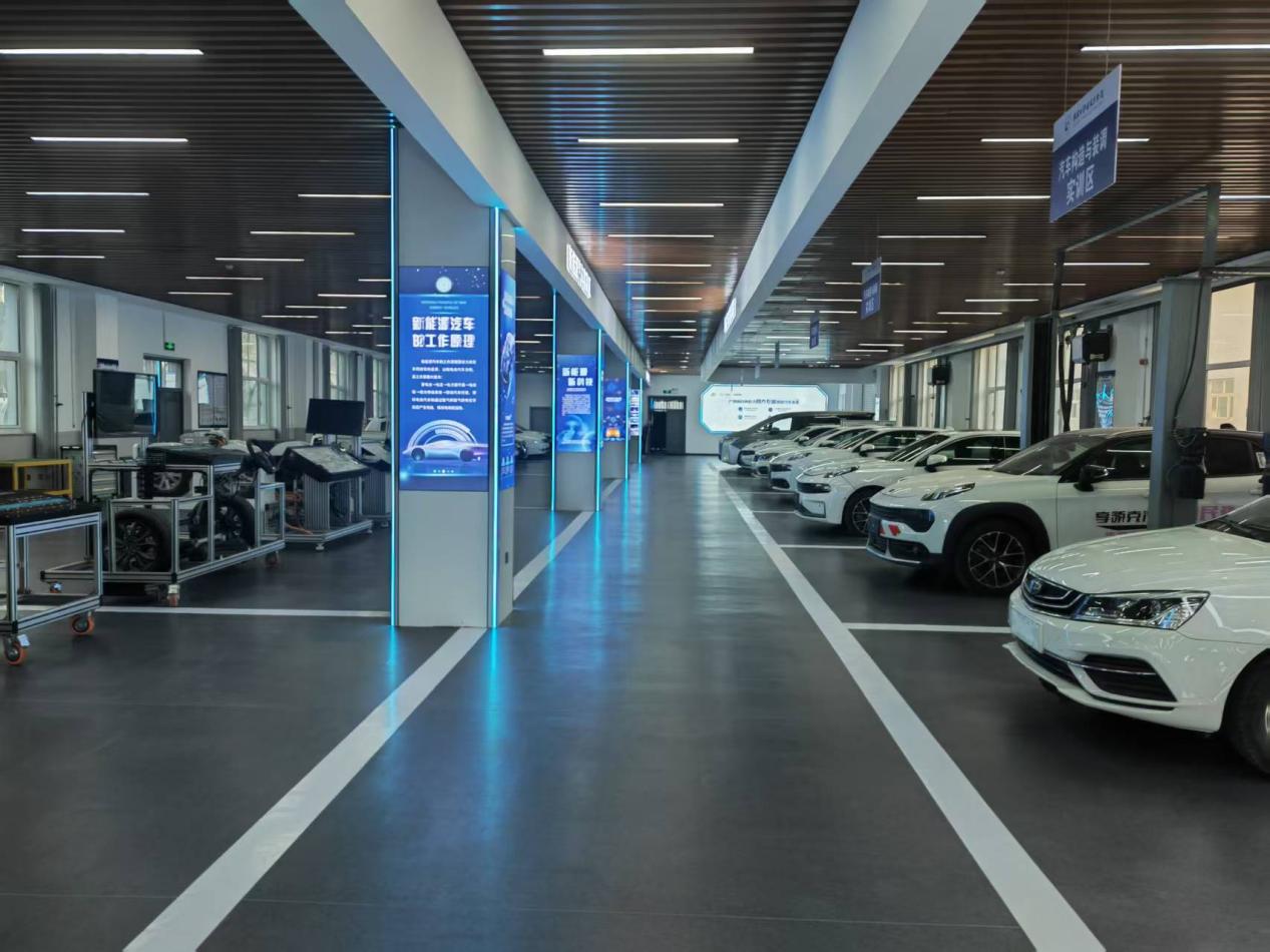 此外,汽车底盘实训区、整车维修实训区也同步完成文化墙迭代,覆盖从传统燃油车到纯电动、氢能动力的全车型实训需求。升级后的实训中心可同时容纳 200 余名学生开展实操训练,为课程教学、技能竞赛、科研创新提供了强有力的硬件支撑。